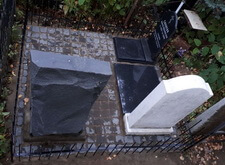 Затем почистили мраморный памятник, который стал на порядок светлее. Восстановили позеленевшую надпись. На гранитных памятниках выгравировали ещё по одной надписи (шрифт заказчик пожелал использовать самый обычный), покрасили ограждение. Так выглядит участок после всех проведённых работ.