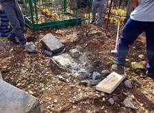 Затем мы аккуратно сняли само надгробье с постамента, после чего смогли свободно работать на участке.