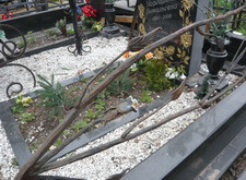 Исходное состояние могилы. Пыль, сорняки, грязь, обветшалые элементы от нахождения под открытым небом
